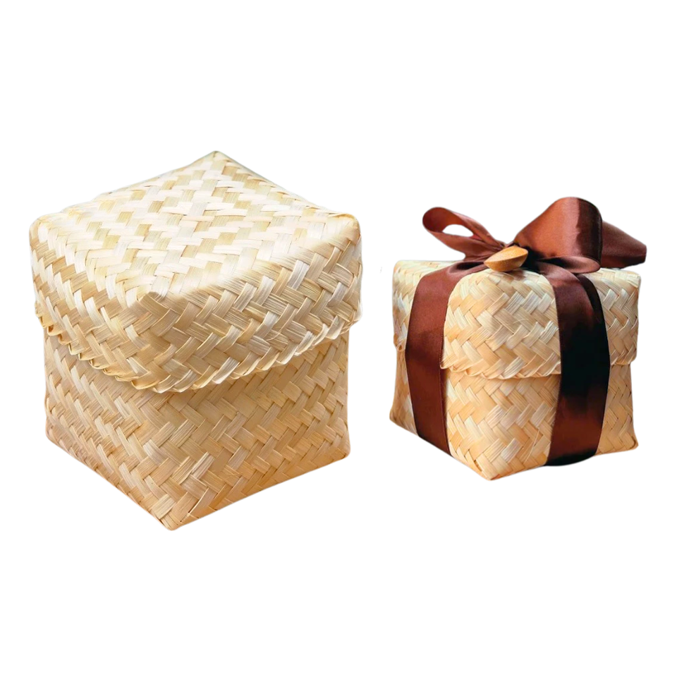 CESTAS DE BAMBÚ Tejidas Naturales Estilo Rústico para Embalaje de Regalos y Decoración de Temporada Regalos de Invitados de Boda Calidad Hecha A Mano