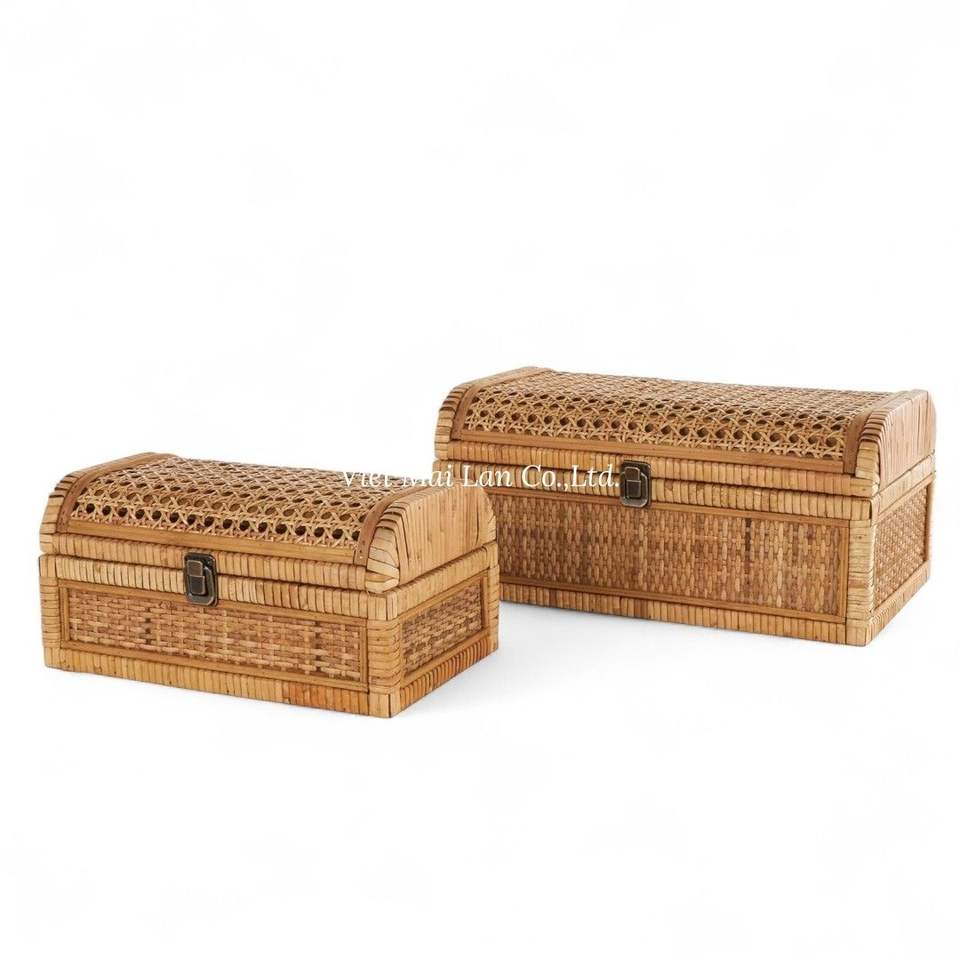 Caja de Almacenamiento de Ratán Tejido Natural para Dormitorio, Sala de Estar y Almacenamiento Diario en el Hogar