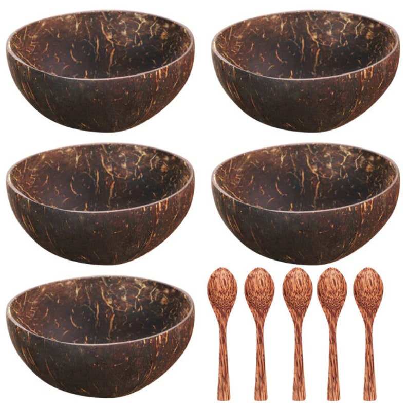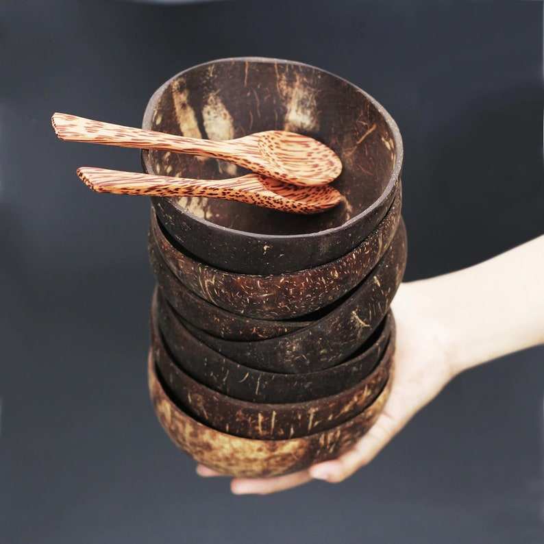 Cuenco de cáscara de coco Natural y orgánico, cuchara de madera de coco ecológica