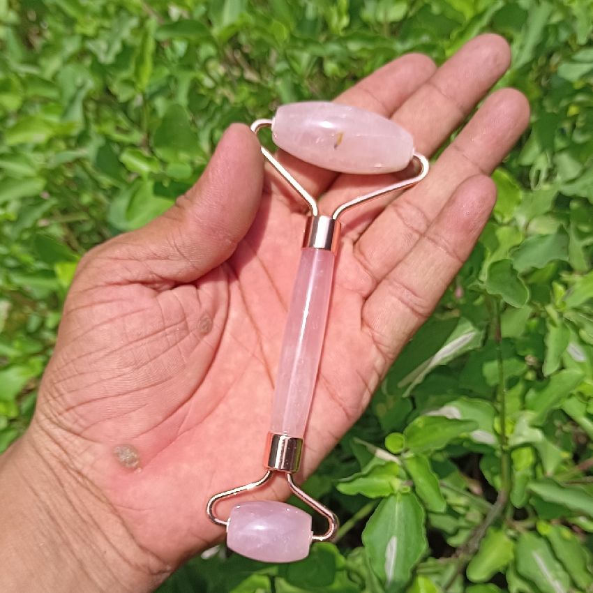 Rodillo de cara de cuarzo rosa curativo natural de calidad superior al por mayor, cristal de amor Reiki tipo ágata para producto de calidad superior