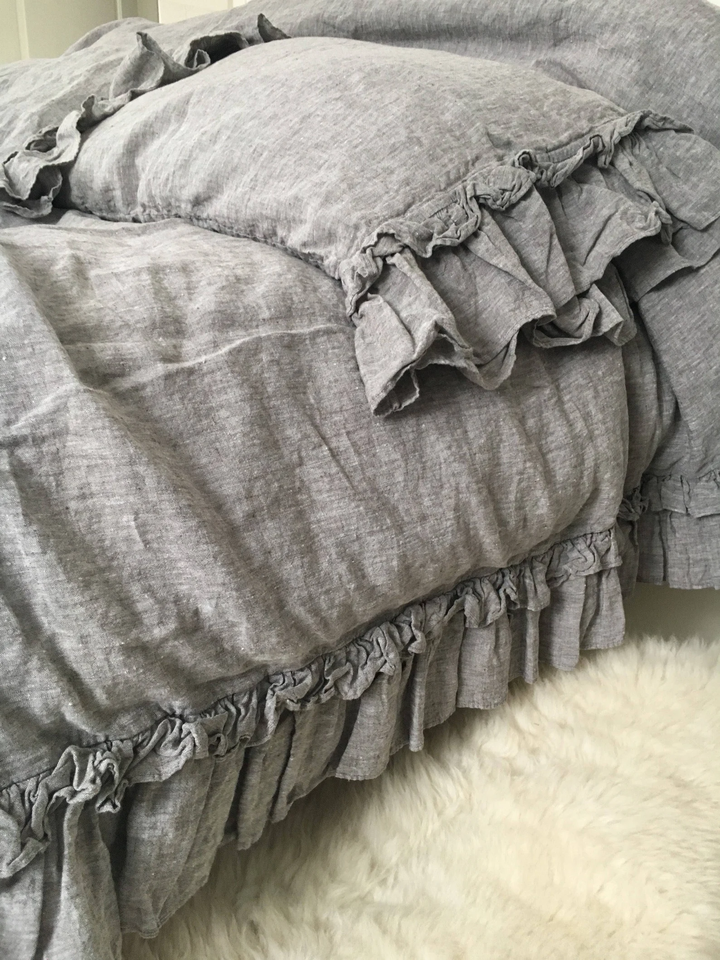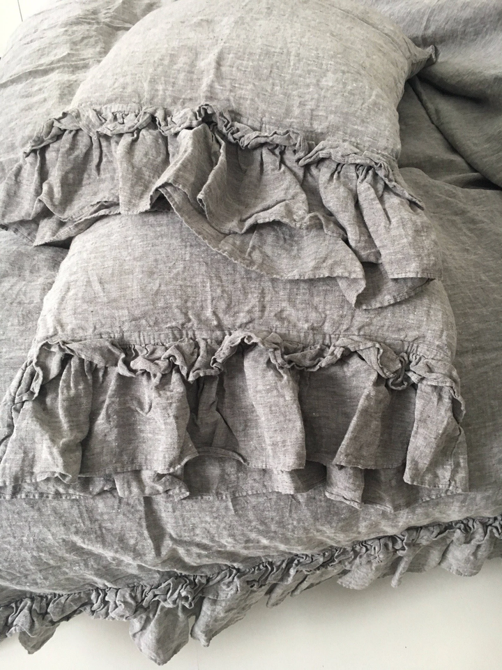 Funda de almohada con volantes de lino natural | Manta con volantes suavizados | Granja decorativa Sham shabby chic estándar King Queen euro
