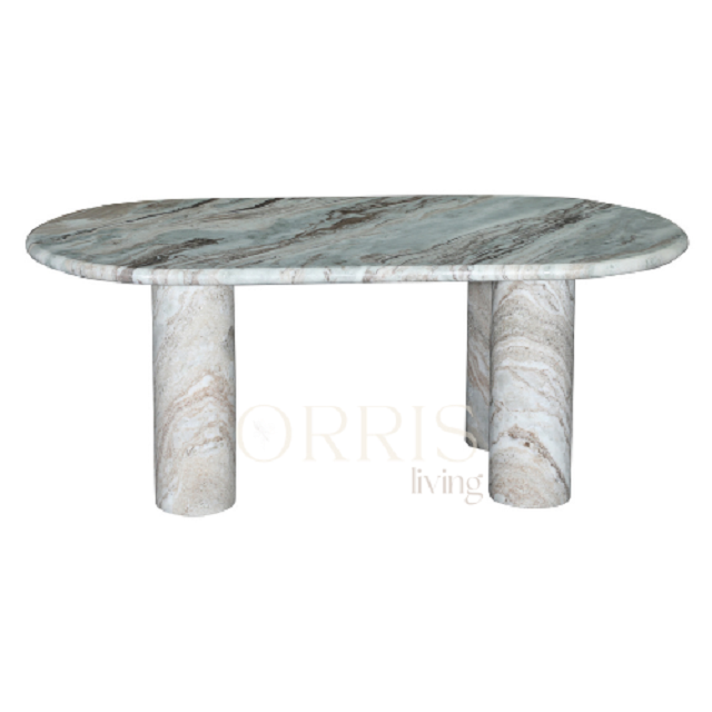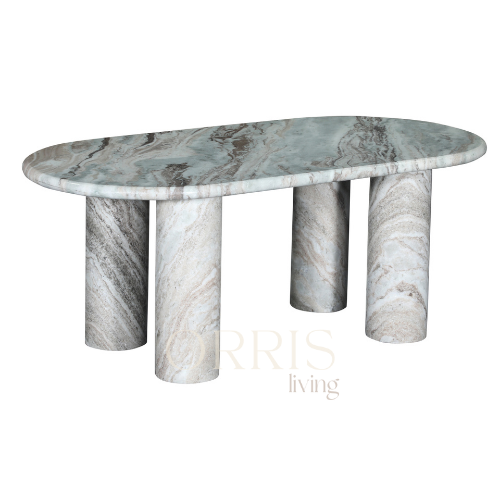 Mesa de centro o comedor de mármol natural, moderna, hecha a mano, ovalada, con patas cilíndricas, mueble de lujo para sala de estar