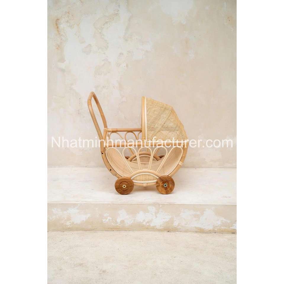 Nombre del producto:Cochecito de muñeca tejido de ratán natural, Cochecito de juguete para bebé
