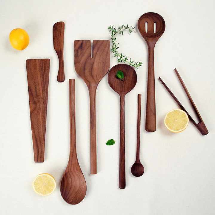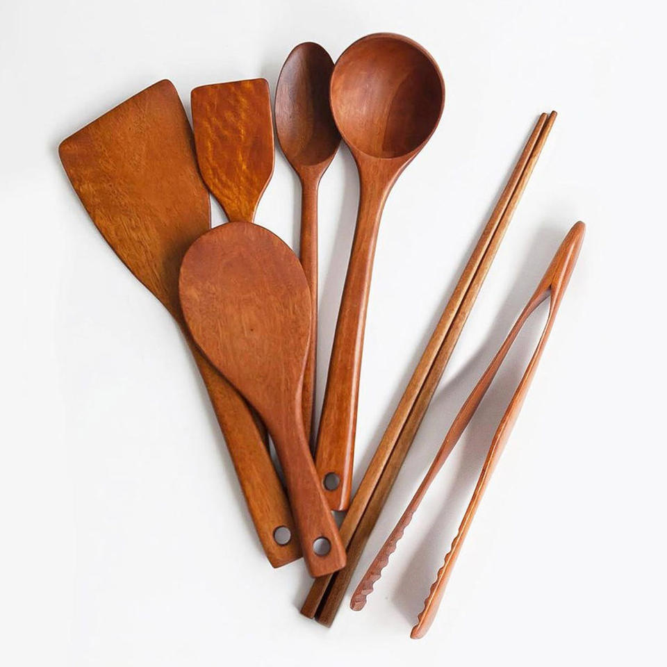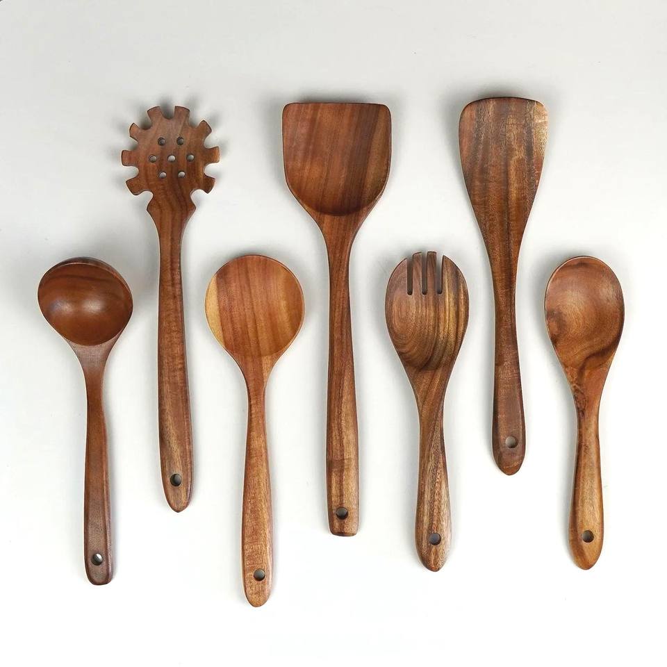 Espátula natural para utensilios de cocina antiadherentes, sartenes y ollas, herramienta de cocina de madera, espátulas de madera de gran calidad