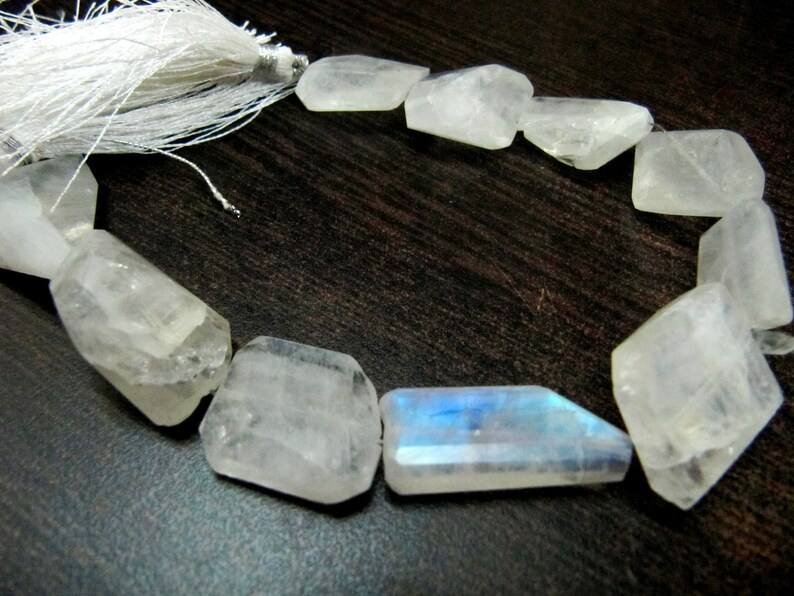 Cuentas facetadas caídas de pepita de piedra lunar arcoíris blanco Natural 10to25mm Strand 8 pulgadas de largo Cuentas llamativas azules de alta calidad