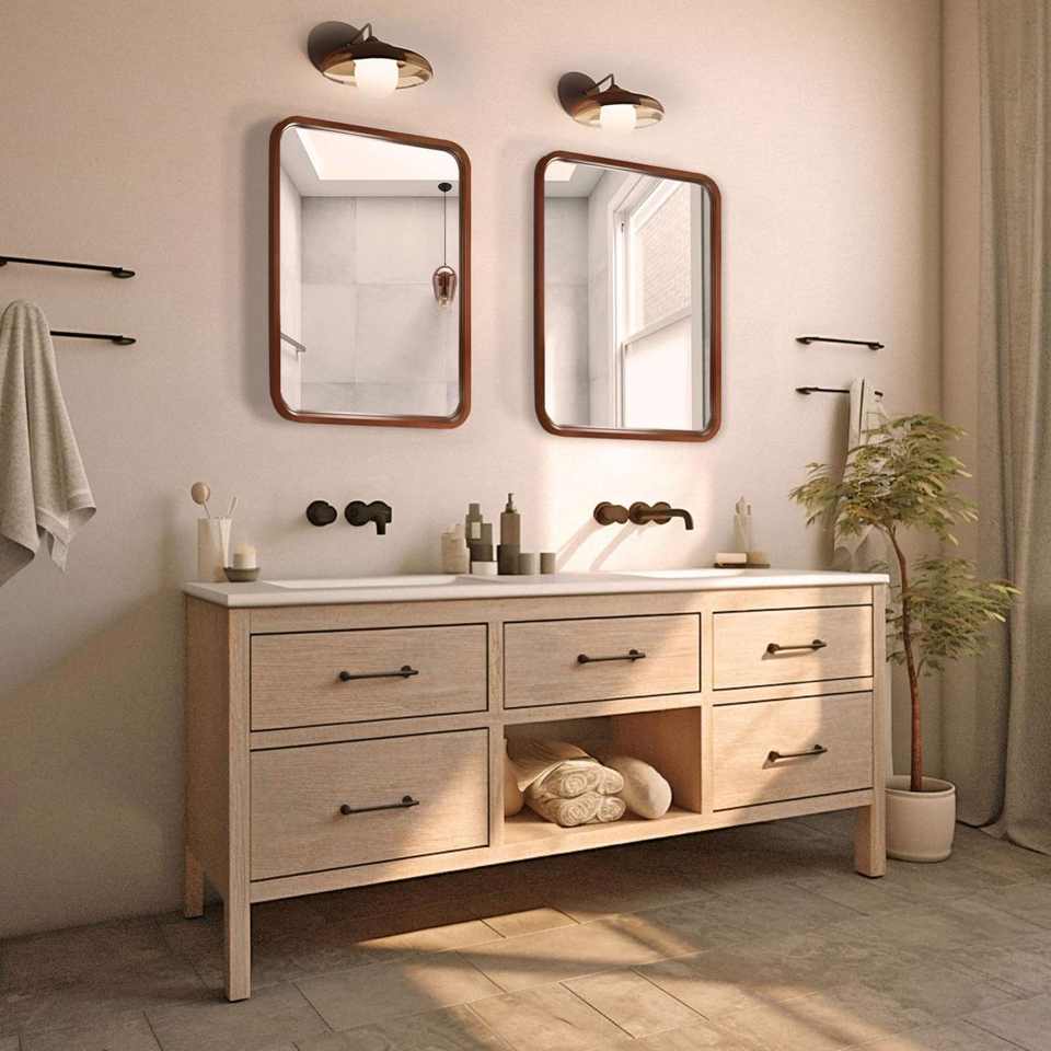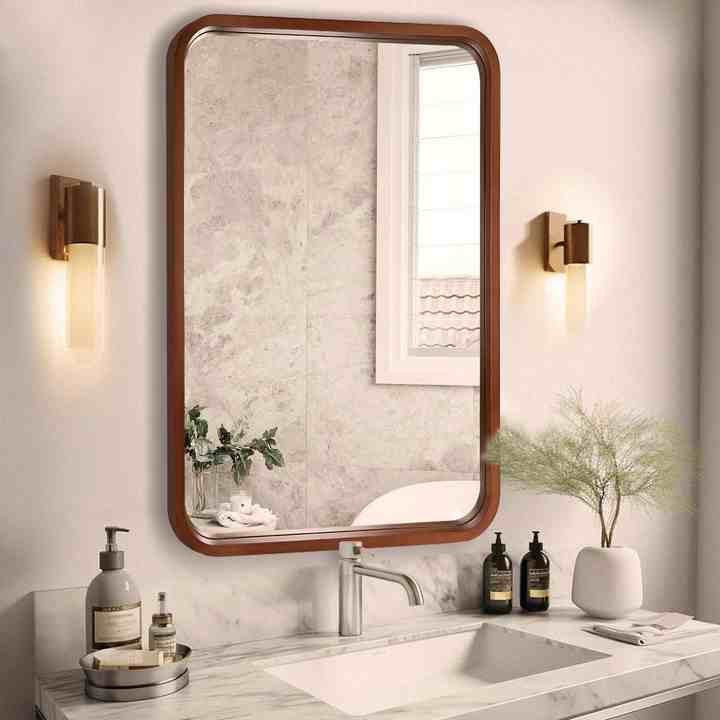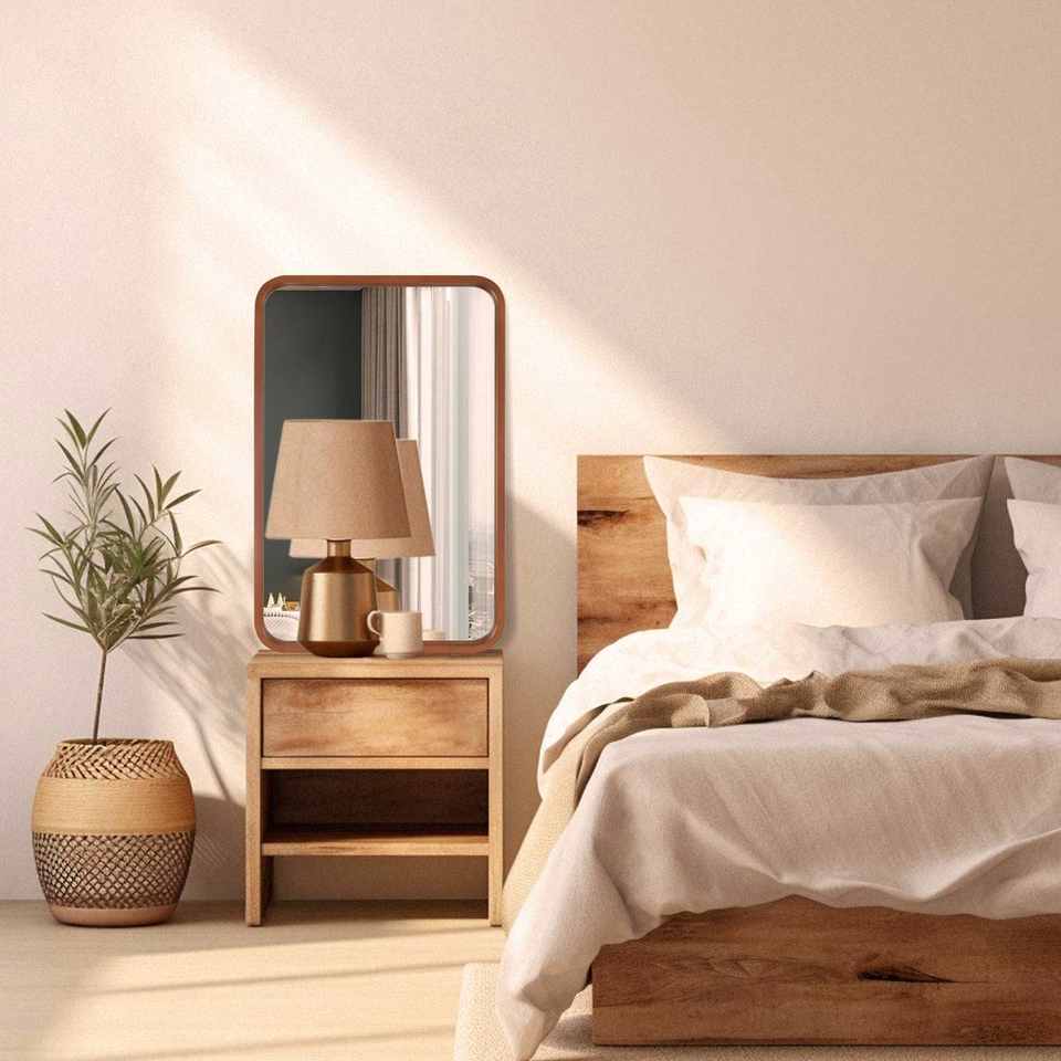 Productos de tendencia 2025 Decoración de pared de madera natural Esquina Rectángulo Espejo con marco de madera Muebles de sala de estar personalizados