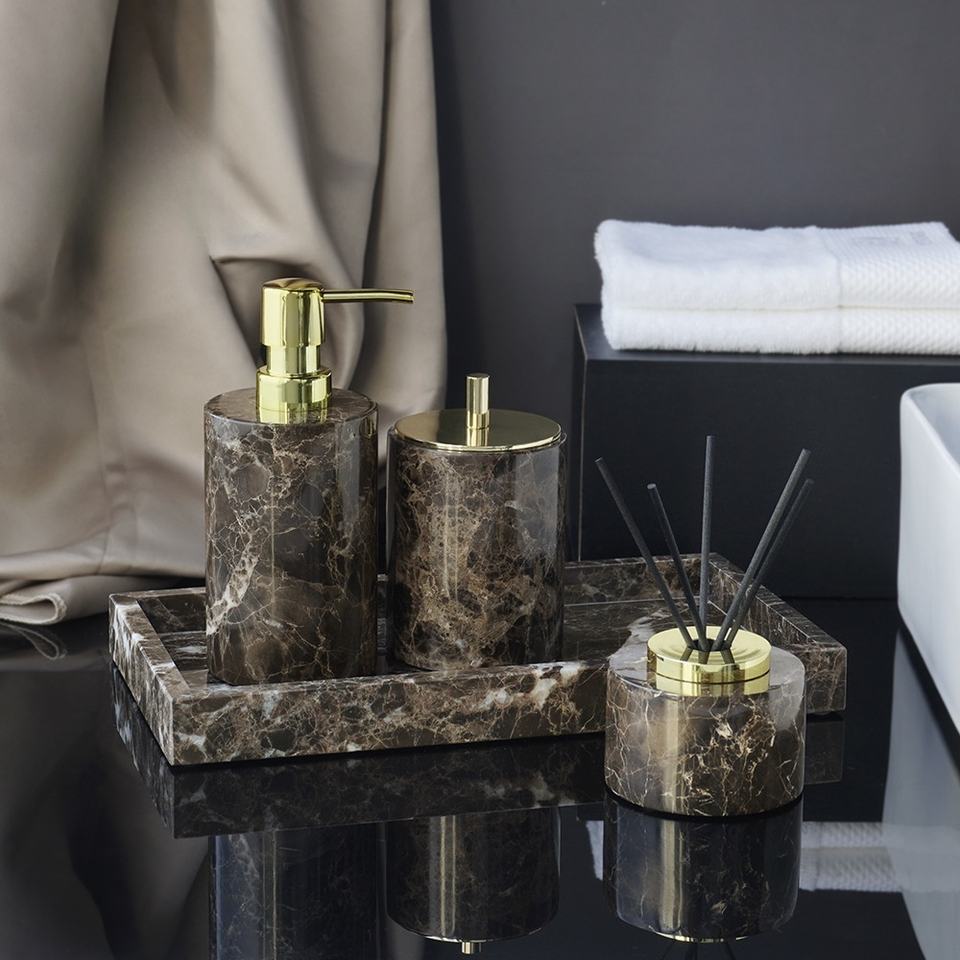 Juego de Accesorios de Baño de Mármol Natural Color Café Intenso, Estilo Wabi-Sabi