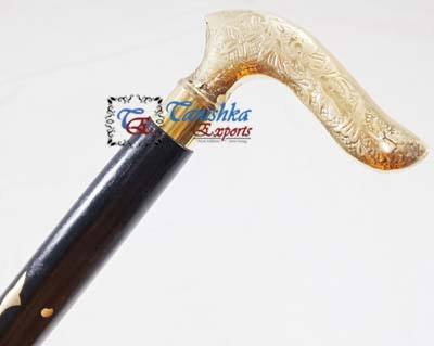 Bastón de madera negro náutico latón pulido diseñador en forma de T mango único bastón de tres pliegues al aire libre senderismo artículo de regalo