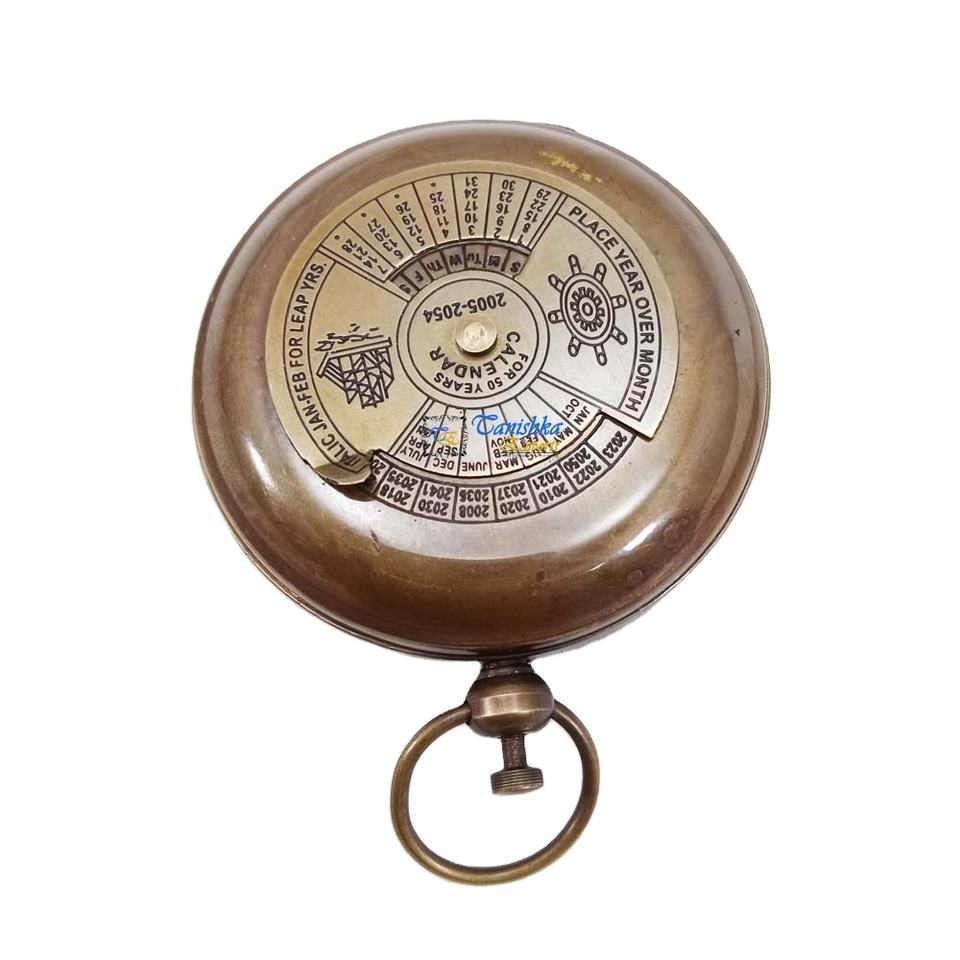 Brújula de Bolsillo Náutica de Latón Antiguo Hecha a Mano con Botón de Presión de 2 Pulgadas, Electrochapada, Magnética, para Camping, Senderismo, Regalo, para Encontrar la Dirección