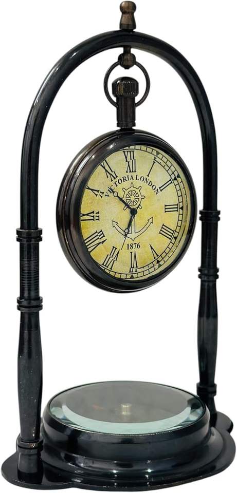 Reloj de Escritorio Silencioso de Cuarzo con Brújula, Estilo Art Deco, Acabado Antiguo, Decorativo, Marítimo, para Hogar u Oficina