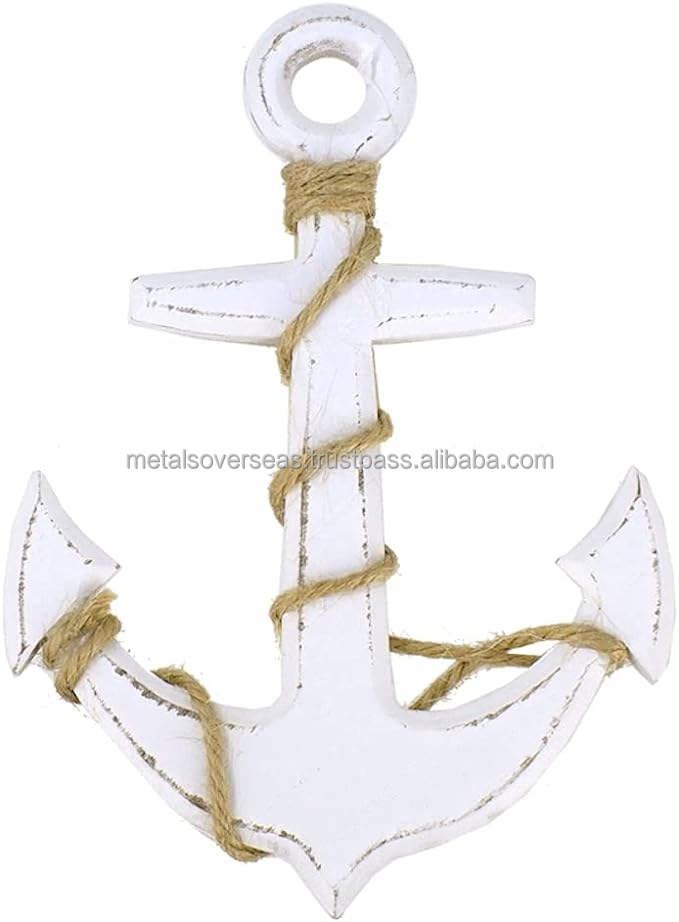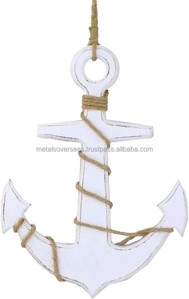 Ancla de madera pintada en Azul Aguamarina Vintage con acento de cuerda colgante, arte de pared duradero personalizado para decoración del hogar