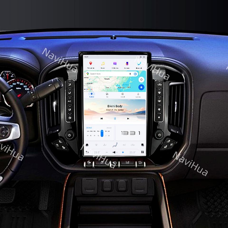 Radio para Auto NaviHua con Pantalla Tesla de 14.4 Pulgadas y Sistema Android para GMC Sierra Chevrolet Silverado 2014-2018, Unidad Principal con Carplay, GPS y Navegación
