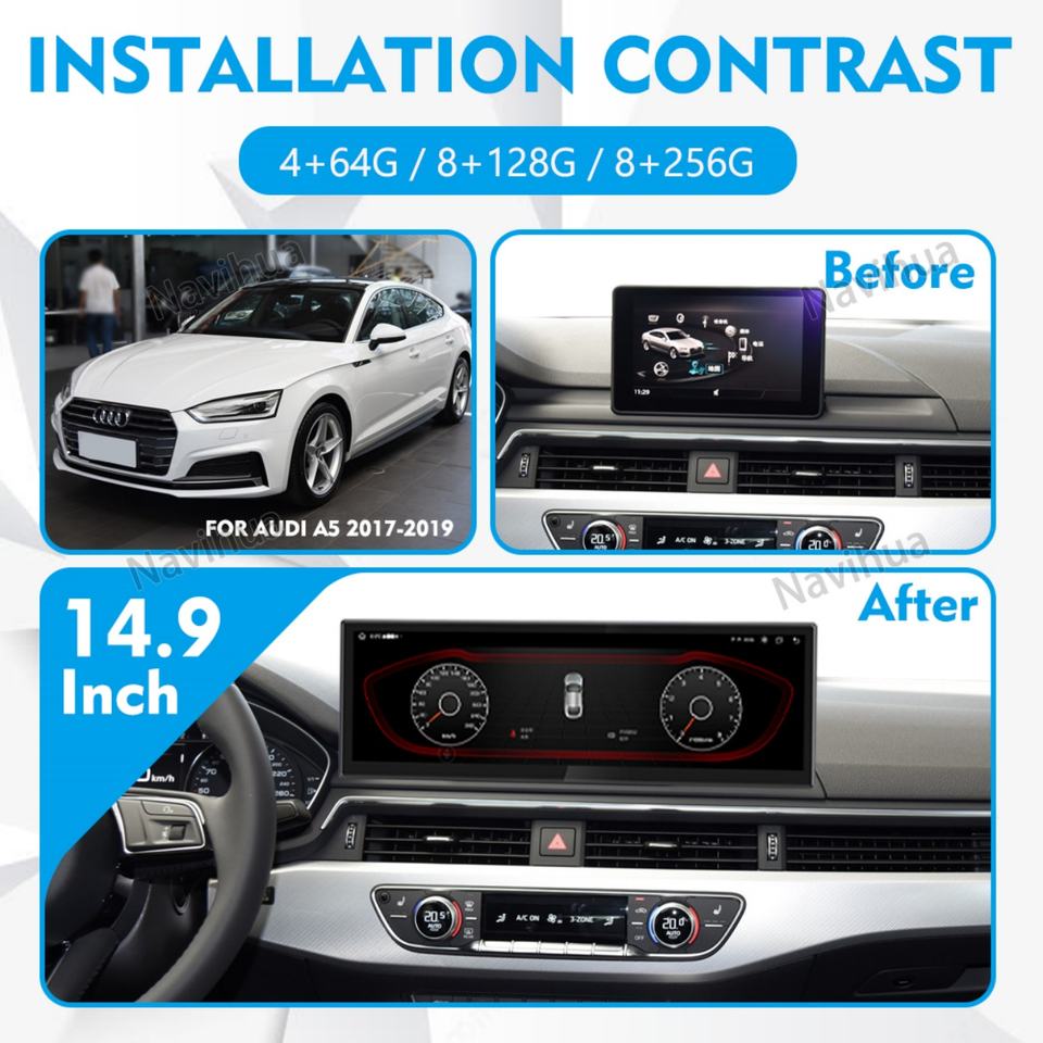 Radio Multimedia para Auto NaviHua con Pantalla 3K de 14.9 Pulgadas, Android, para Audi A4L A5 2017 2018 2019, GPS, Navegación, Carplay, Unidad Principal Nueva