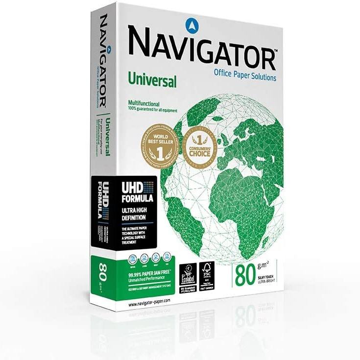Papel de copia Navigator A4 80gr-500 1 caja = 5 paquetes 1 palé = 225 paquetes