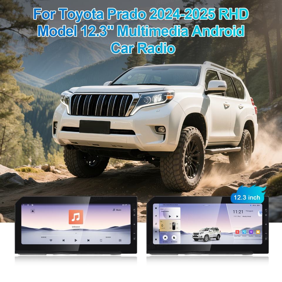 Radio para Auto Navihua de 12.3" con Android, GPS, Navegación, Carplay, Reproductor Multimedia de DVD para Toyota Prado 2024-2025, Volante a la Derecha/Izquierda