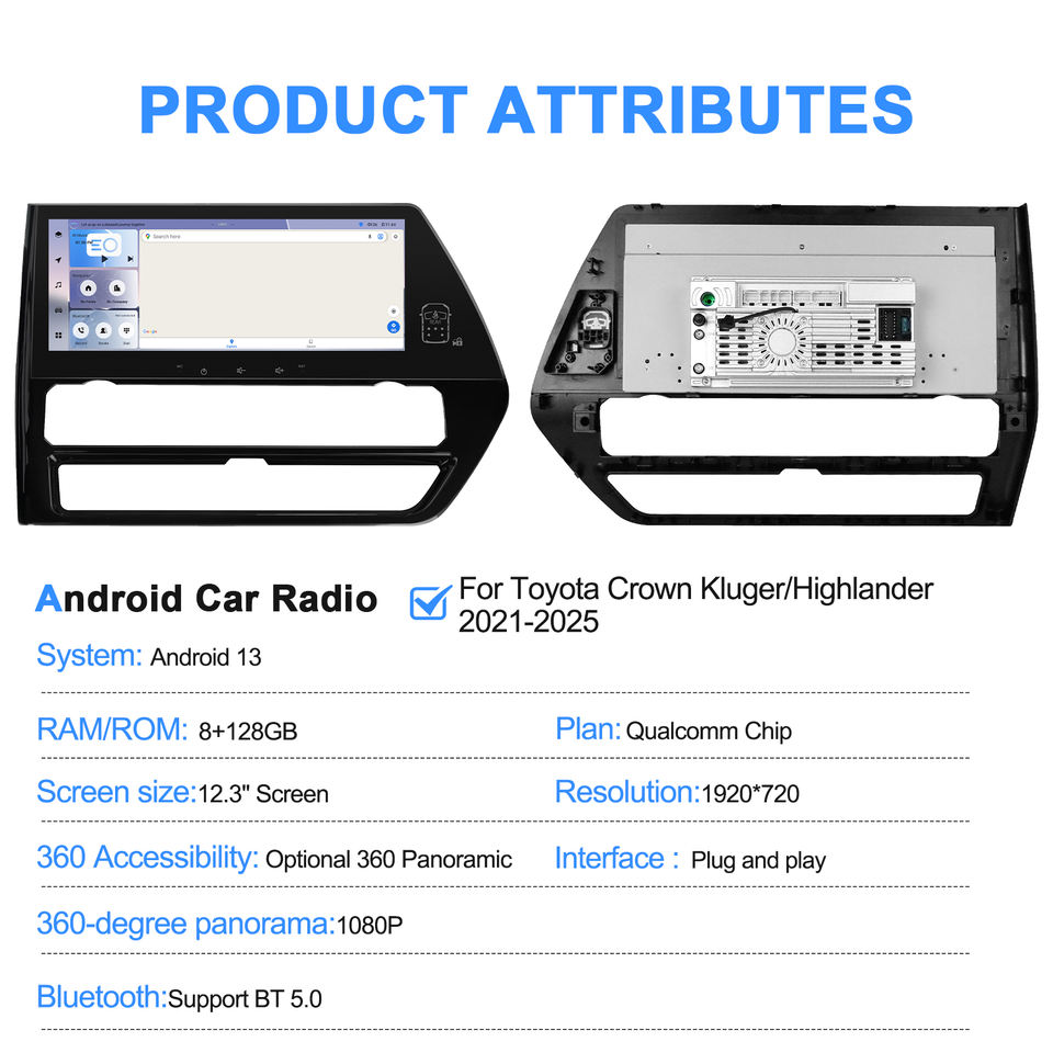 Radio Multimedia para Auto Navihua de 12.3'' con Pantalla Táctil Android Auto y Carplay para Toyota Crown Kluger/Highlander 2021-2025