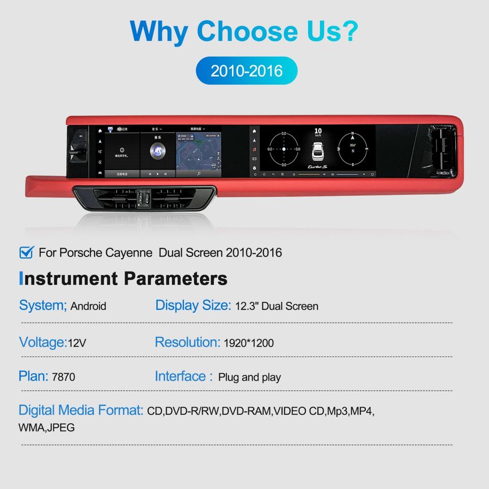 Radio con Pantalla Doble y Navegación GPS para Auto Navihua Android Auto, Pantalla Doble para Porsche Cayenne 2010-2016 con Carplay