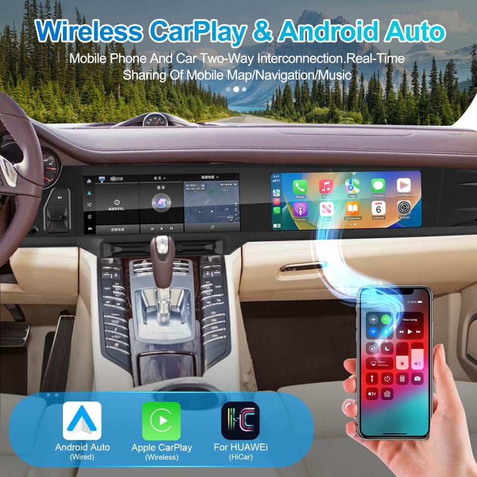 Reproductor de DVD para Auto Android Navihua con Radio y Entretenimiento Multimedia para Pasajeros, Pantalla Dual para Porsche Panamera 2010-2016