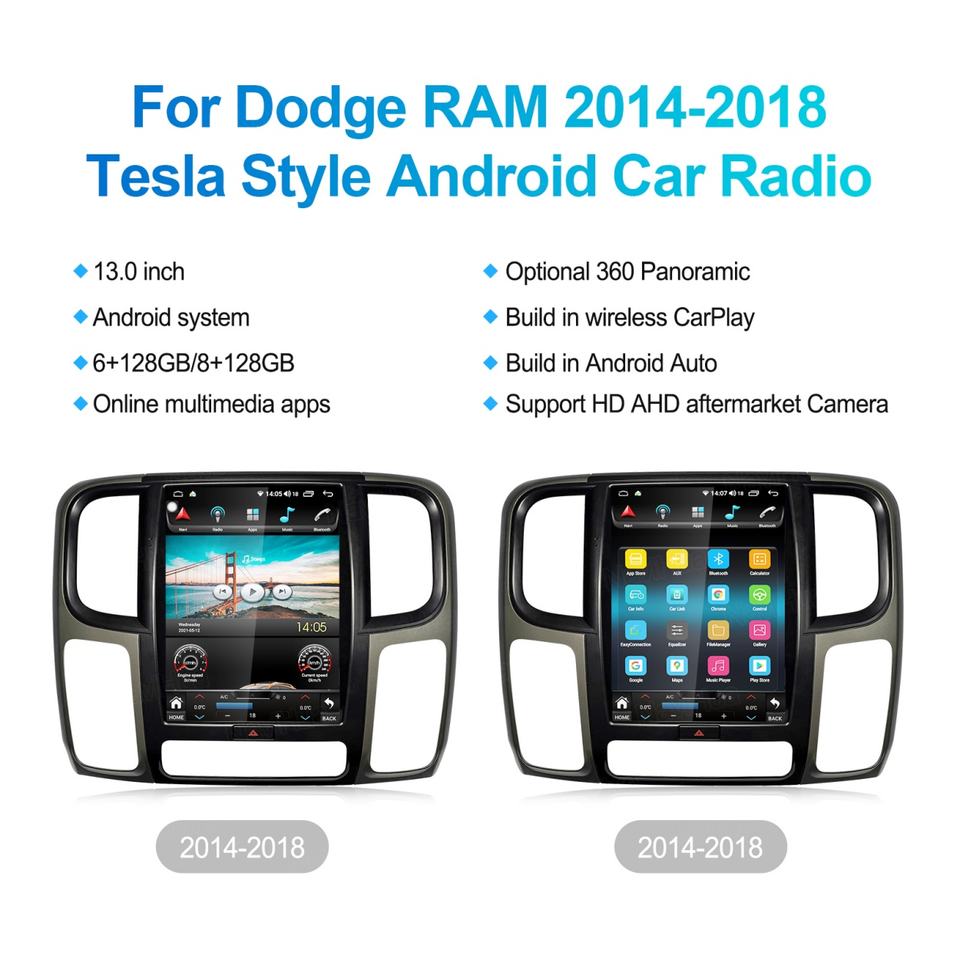 Radio para Auto Navihua con Pantalla de 13'' Android, Reproductor de DVD, GPS, Navegación, Carplay, Estéreo para Dodge RAM 2014-2018 (Versión Económica)