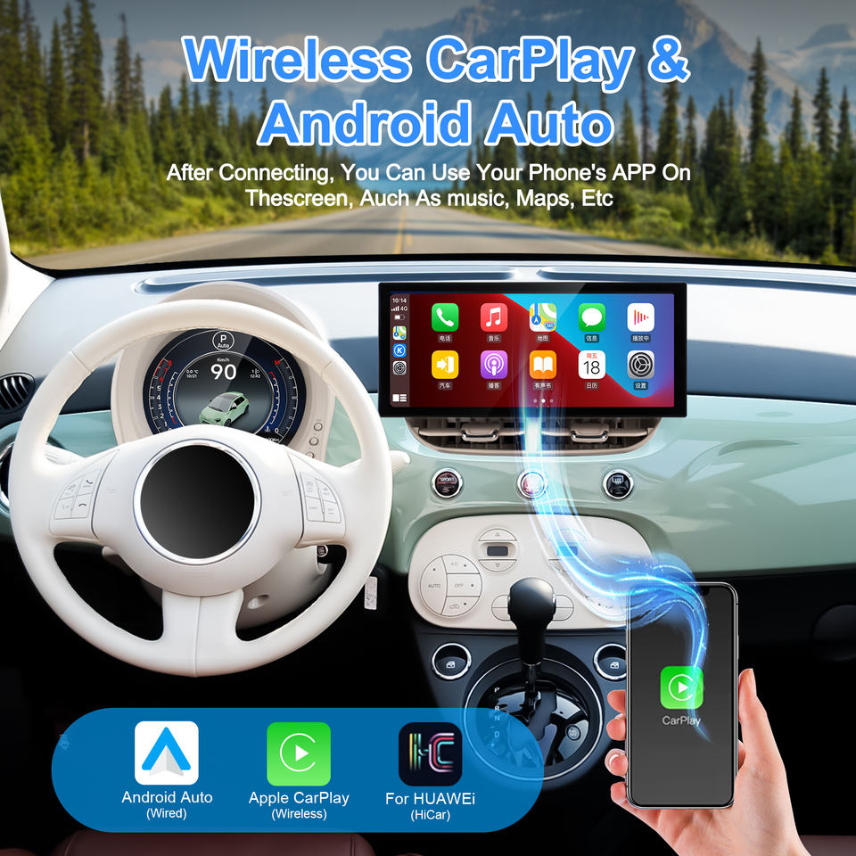Radio para Auto Navihua con Pantalla LCD Android, Velocímetro, GPS, Navegación Multimedia para Fiat 500 2007-2024