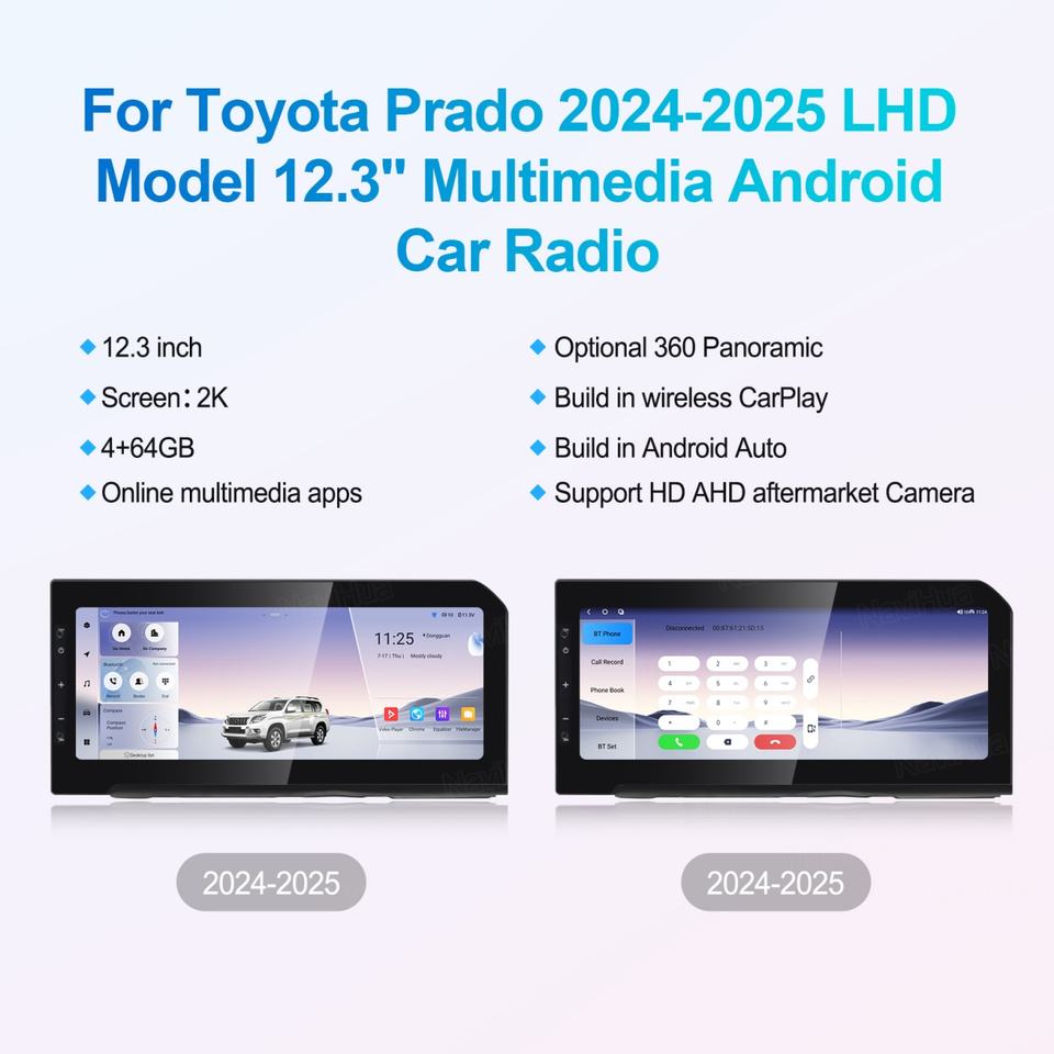 Navihua, Nuevo Reproductor Multimedia con Navegación GPS, 2 Din, Accesorios para Automóviles Android, Monitor para Toyota Prado LC250 2024 2025