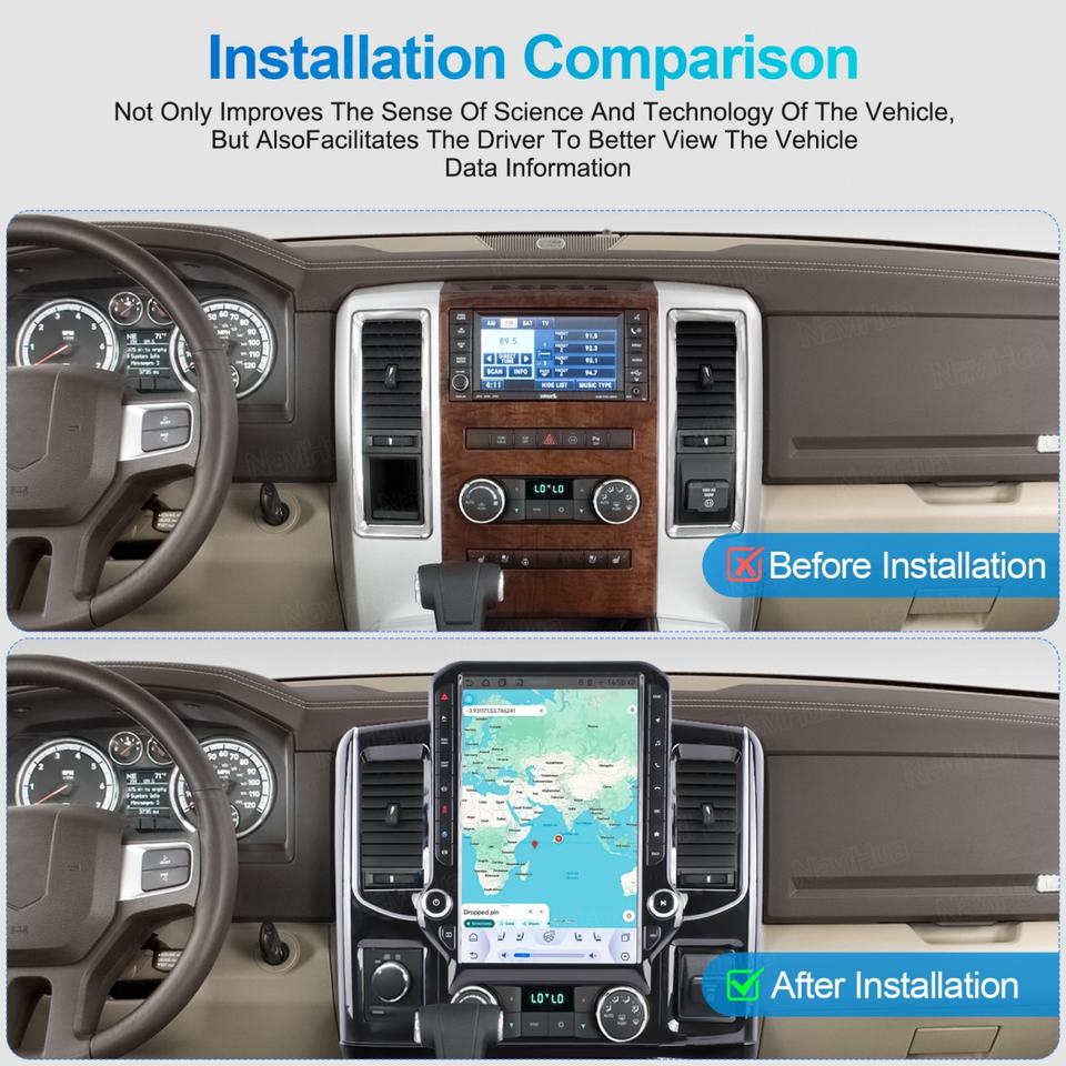 Radio para Auto Navihua para Dodge RAM 2008-2014, Actualización con Pantalla Android de 14.5 Pulgadas, GPS, Navegación, Multimedia, Carplay, Unidad Principal Estéreo