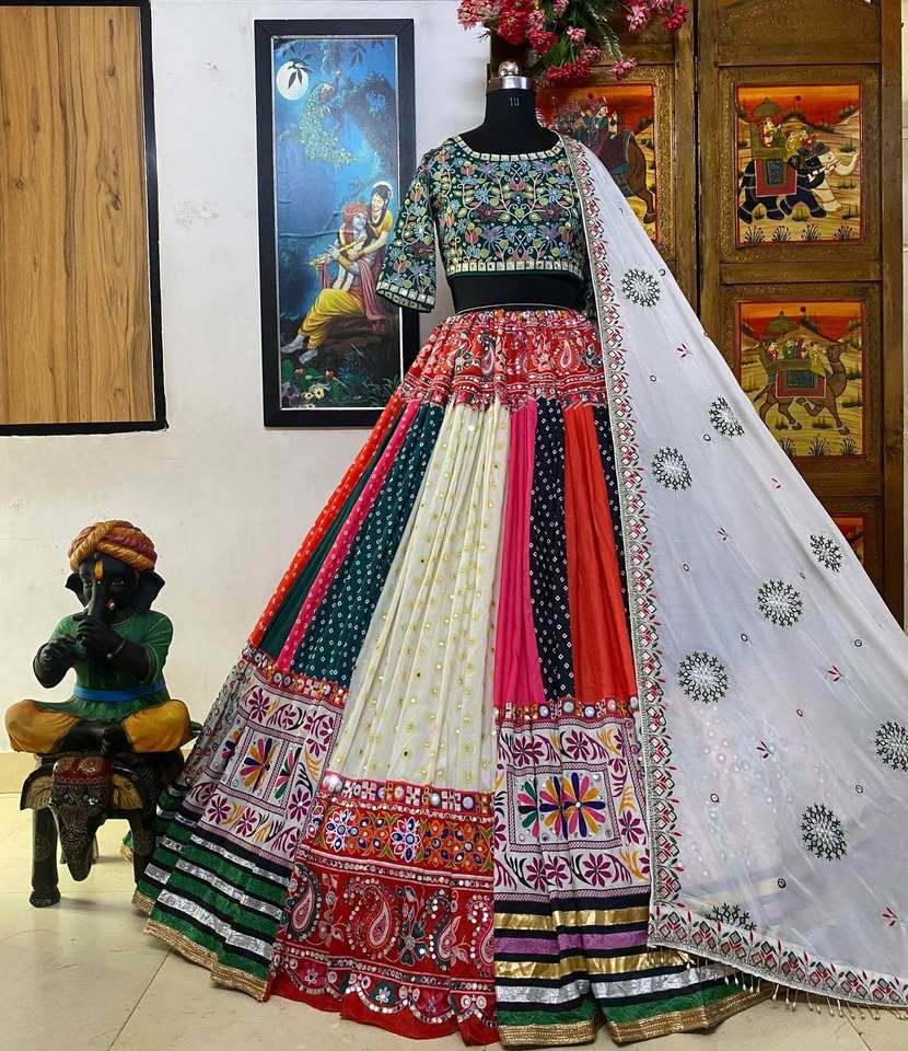 Nombre del producto:Lehenga Choli y Dupatta Impresión de algodón de muselina y trabajo de espejo real