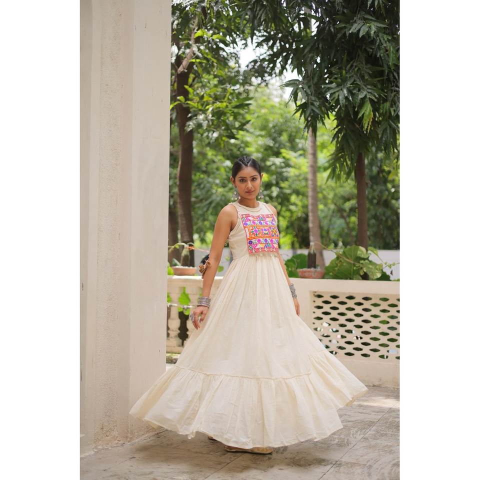 Navratri Special Multi-Thread Vestido de noche bordado