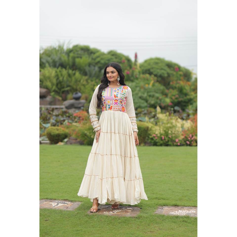 Navratri Special Multi-Thread Vestido de noche bordado