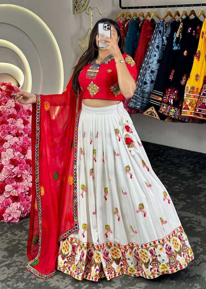 Nombre del producto:Lehenga y Choli Dupatta Rayon Chine Secuencia Real Espejo Trabajo