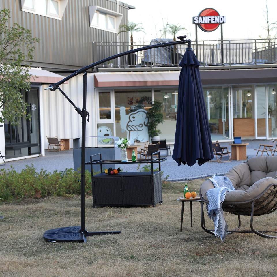 Sombrilla de Patio Colgante con Luces LED Solares de 3 Metros, Color Azul Marino