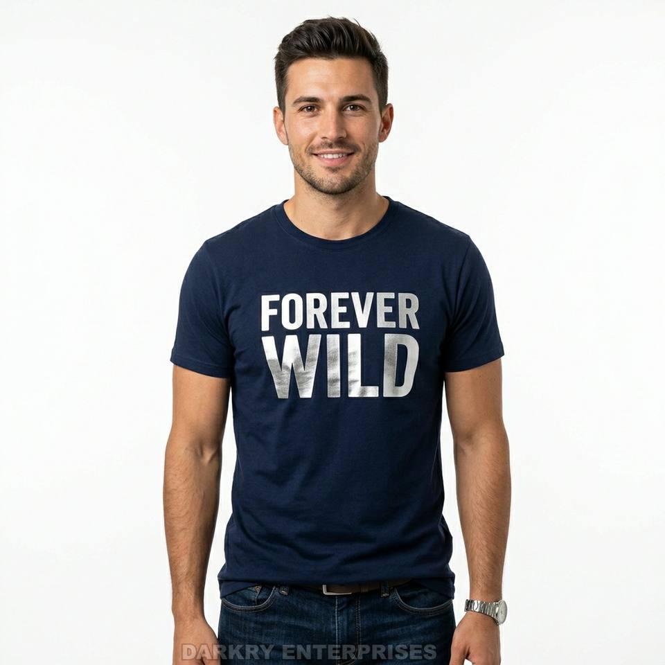 Camiseta Azul Marino Personalizada con Logotipo para Hombre, Impresión en Serigrafía con Gráficos en Lámina Plateada, Fabricante de Camisetas, OEM, Algodón Suave, Tops Casuales para Hombre