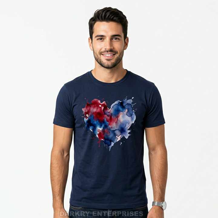 Camiseta Azul Marino para Hombre con Logotipo Personalizado, Diseño Abstracto de Corazón en Acuarela, Fabricante de Camisetas con Gráficos de Salpicaduras de Tinta, Ropa de Algodón de Marca