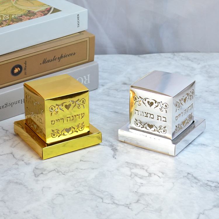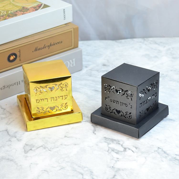 Caja de recuerdo de corte láser personalizada, color azul marino, para bar mitzvah, tefillin
