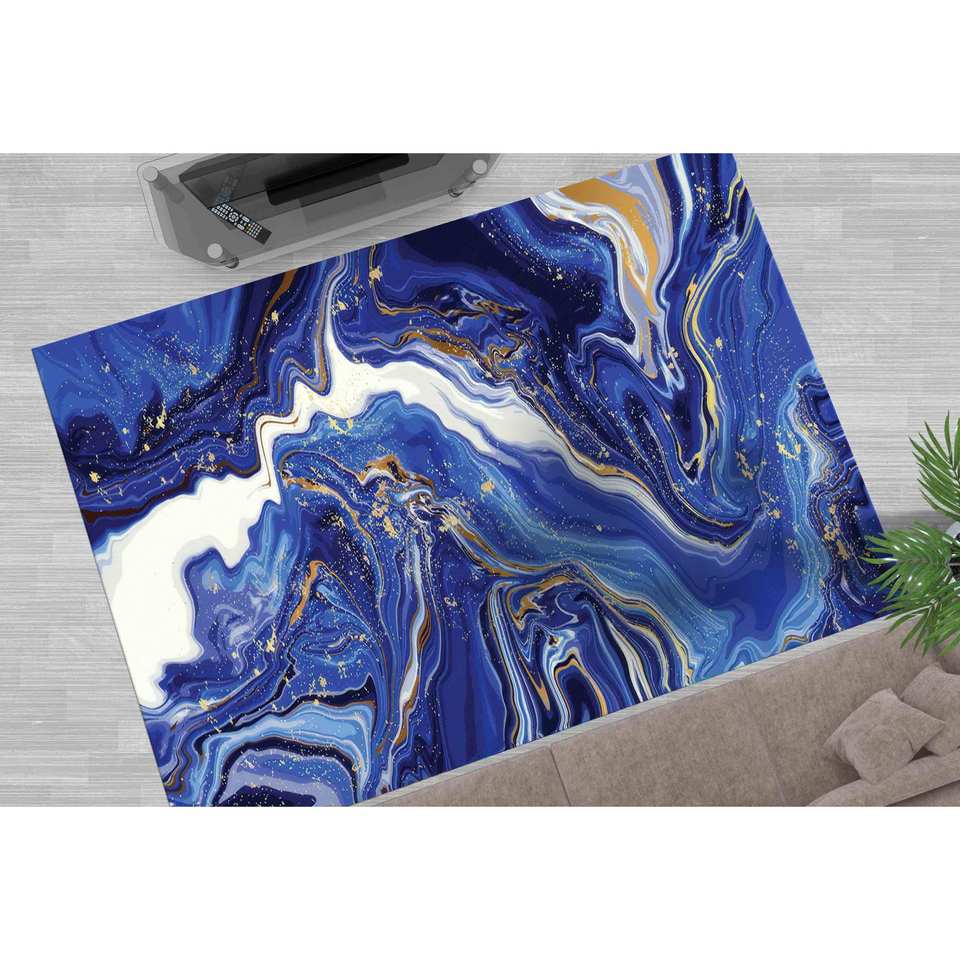 Alfombra Azul Marino con Diseño de Mármol: Alfombra Moderna Abstracta Antideslizante, Alfombra Delgada No Tejida