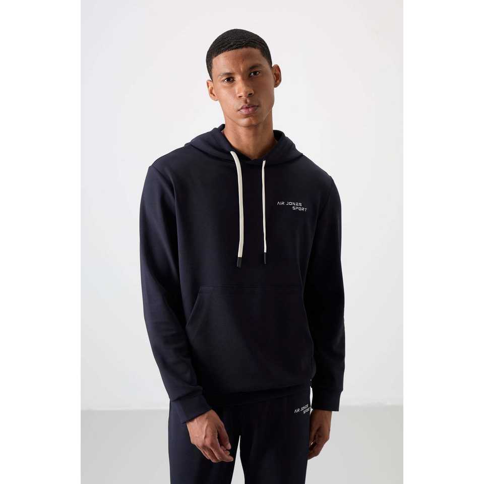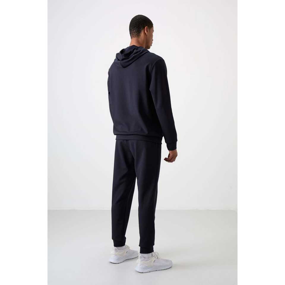Conjunto deportivo azul marino para hombre, corte cómodo, sudadera con capucha y pantalones de algodón, conjunto completo