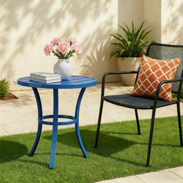 Mesa Auxiliar Redonda Azul Marino para Exteriores, Mesa Pequeña de Metal para Patio, Mesa de Centro para Café, Mesa Bistro para Uso en Interiores y Exteriores