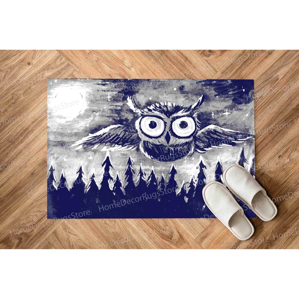 Alfombra con Pintura de Búho Azul Marino, Alfombra Impresa, Personalizada, para Salón, Abstracta, Animal, Alfombra de Terciopelo de Lujo