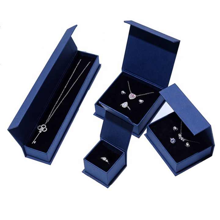 Cajas de Joyería Rectangulares Azul Marino de Estilo Simple, Juego de Cajas de Cartón Tipo Concha en Stock con Patrón Cuadrado