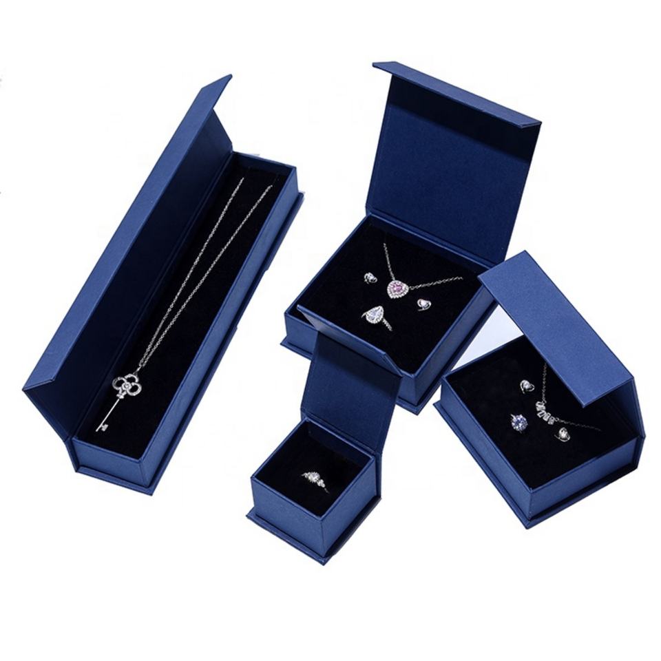 Nombre del producto:Cajas de joyería tipo concha de cartón azul marino y marfil en stock 2022