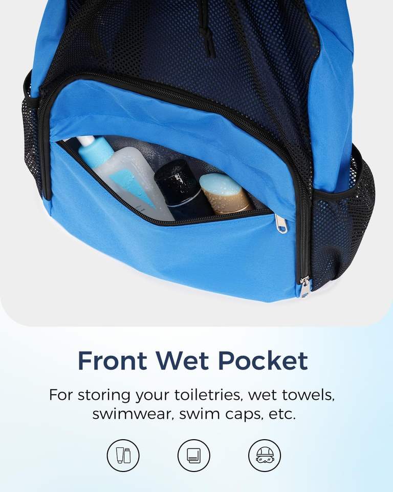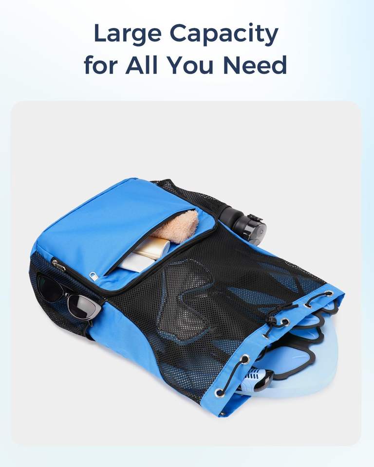 Mochila Deportiva Azul Marino con Cordón, Bolsillo Impermeable y Compartimento de Malla para Equipo de Natación, Playa, Entrenamiento y Almacenamiento de Zapatos
