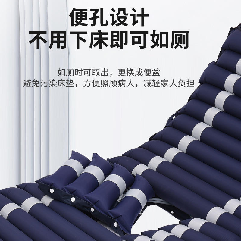 Colchón Inflable Azul Marino con Franjas, Doble Canal de Aire, Transpirable, Grado Médico, para Rehabilitación de Discapacitados
