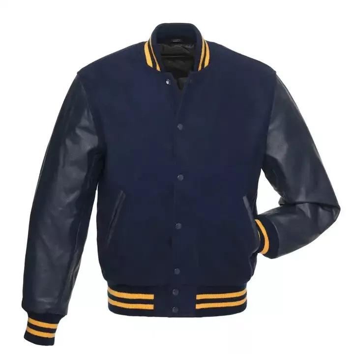 Chaqueta con letras de lana azul marino para hombre, cuello levantado, transpirable, a prueba de viento, personalizable, Mega Empire