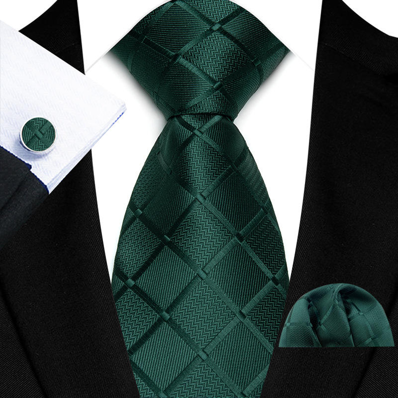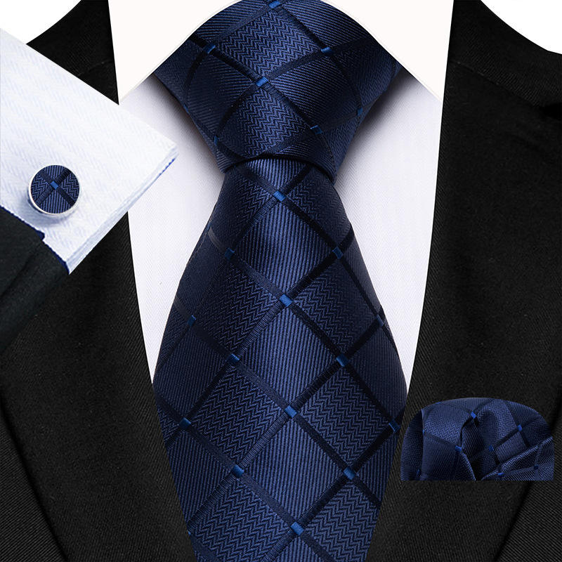 Corbatas Formales a Cuadros de Color Azul Marino para Hombre, Corbata de Lujo de 8 cm con Pañuelo de Bolsillo, Juego de Regalo, Tejido Jacquard, Accesorios para Traje de Negocios