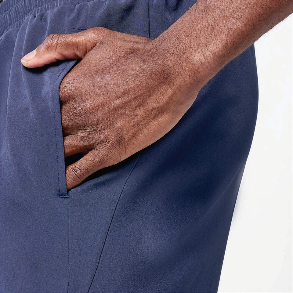 Pantalones cortos de color azul marino esencial de 5 pulgadas con paneles laterales de contorno y pantalones de malla interior Tela ligera que absorbe la humedad