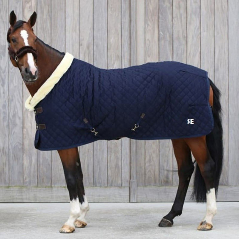 Manta/Alfombra para Caballo Azul Marino Acolchada con Piel de Oveja, Color Marrón Oscuro, Relleno de Poliéster 100G 200G 300G, Diseño Personalizable de Última Moda