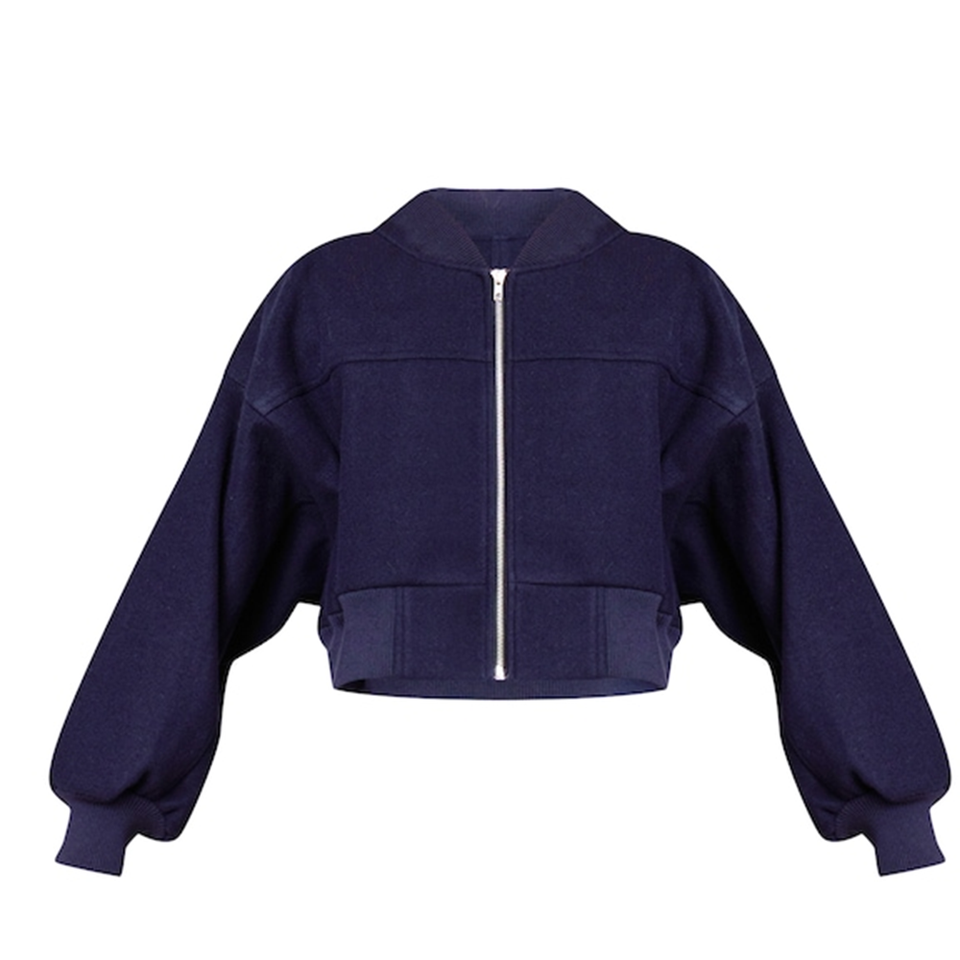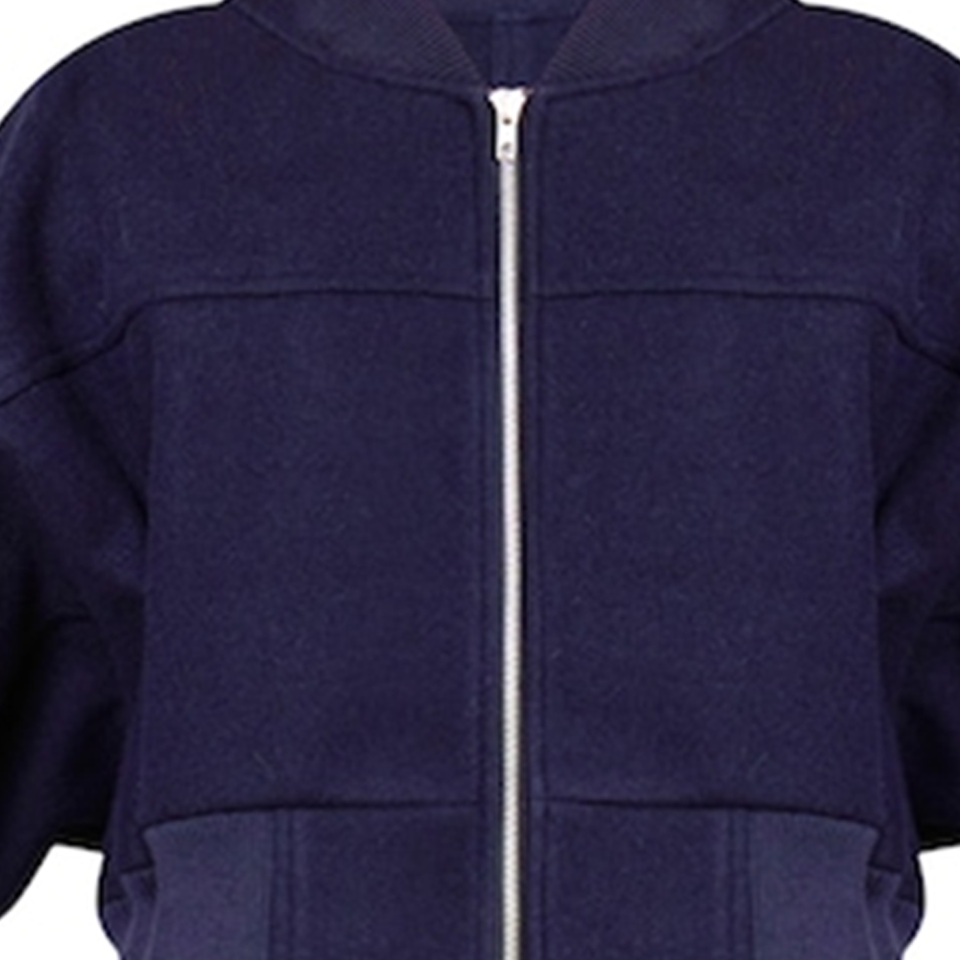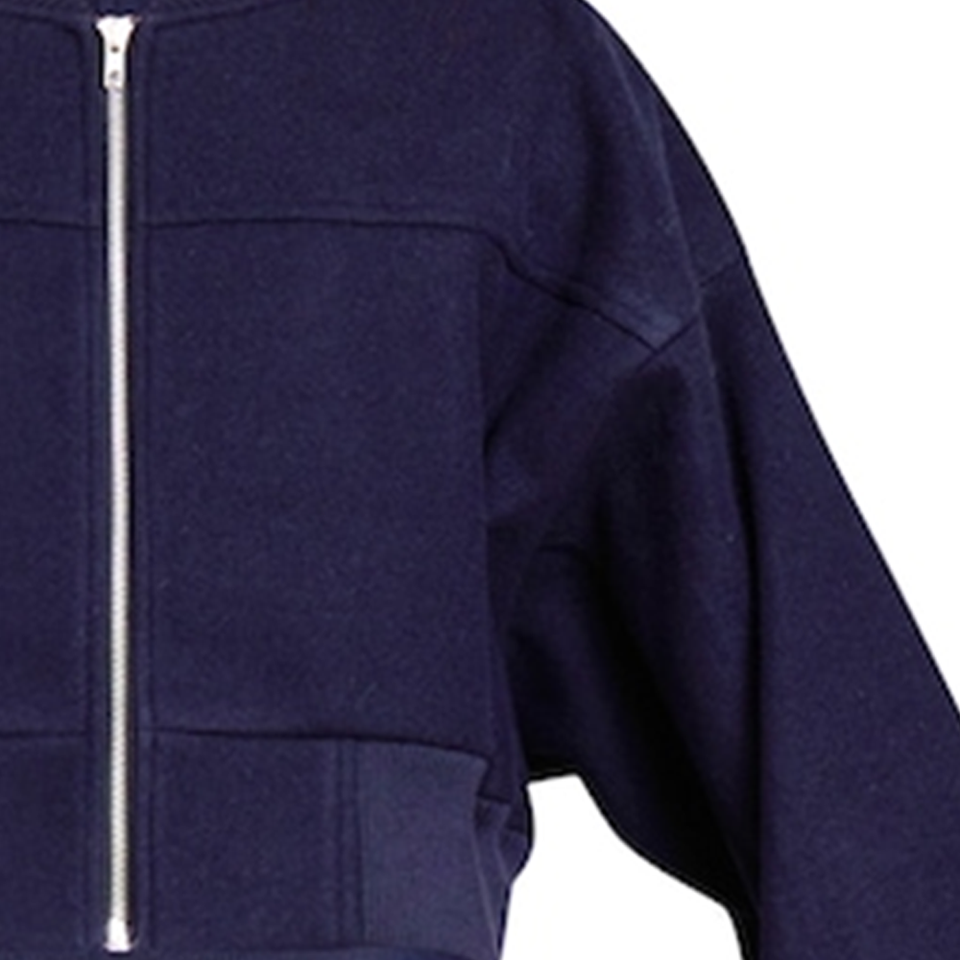 Chaqueta Bomber Corta Azul Marino con Mangas Fruncidas, Unisex, Casual, con Cierre, de Lana Sintética, Cuello en V, Puños y Dobladillo Impermeables