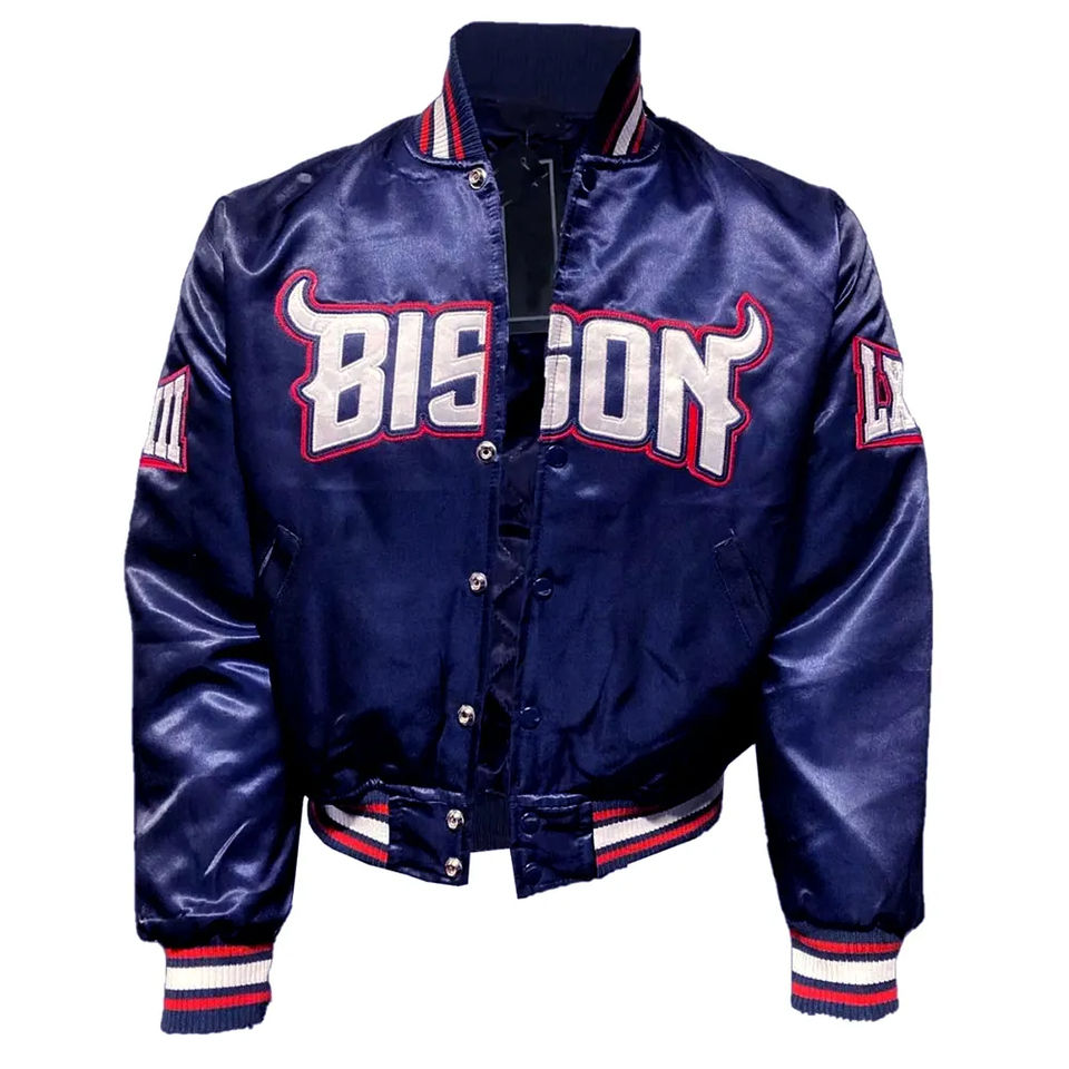 Chaqueta universitaria recortada de bisonte de satén azul marino, ropa de calle ligera de estilo universitario Retro, prendas de vestir exteriores de moda, bombardero informal para mujer