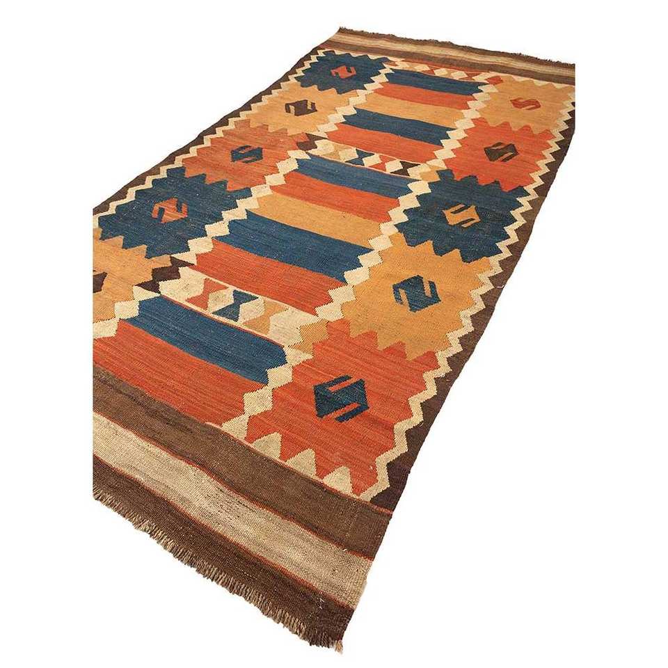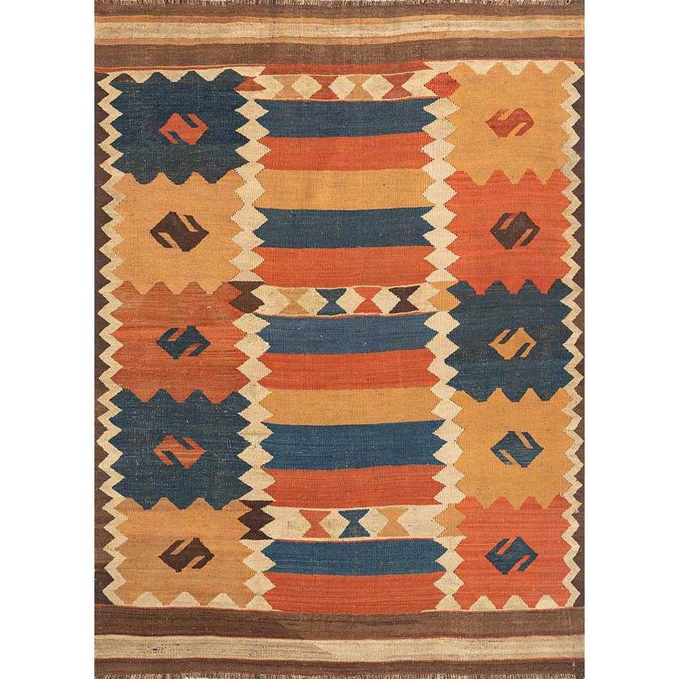 Alfombras de Lana Hechas a Mano Nayaab de Gran Tamaño, 9x12, Rectangulares, con Patrón Geométrico Clásico Rojo Naranja, Tejido Plano para Entrada del Hogar -Paem-990
