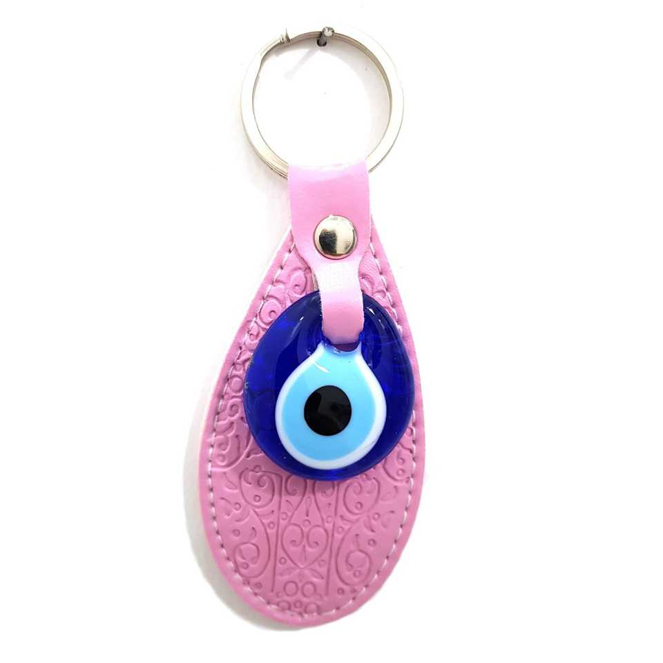 Llavero ovalado Nazar Boncuklu Pembe Pudra con aleación de zinc impresa UV y material plástico